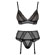 This transparent set is broken up by a delicate lace trim and is perfect for exciting, seduction. This set is extremely comfortable to wear which means that it can also be worn during everyday activities as well. This set puts the feminine body in the limelight because of its transparent material, which is broken up by a delicate lace trim, and its decorative sparkly rhinestones.